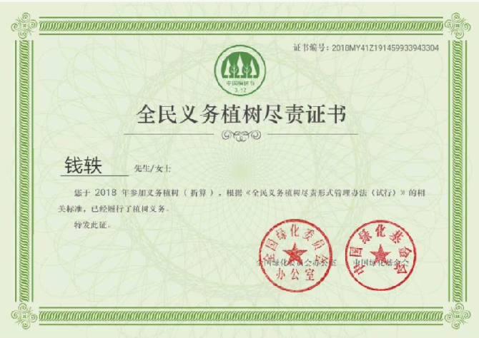 作为一名热爱地球的环保达人,我提倡素食(已坚持素食7年零8个月),保护地球;我与时俱进,今年还在蚂蚁森林种下6棵树,3块保护地,发起了义工林合种,因此成功获得由全国绿化委员会办化室和中国绿化基金会颁发的全民义工植树尽责证书。